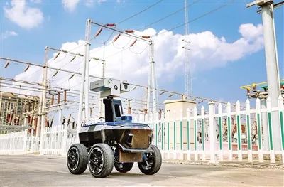 啥是“地空联合”?14时30分,在变电站一个小巧的机器人充电站内,卷帘门一开,一个机器人走出了它的空调屋开始工作。机器人每天走同样的路线,水泥地被它磨出了两道明显的印。