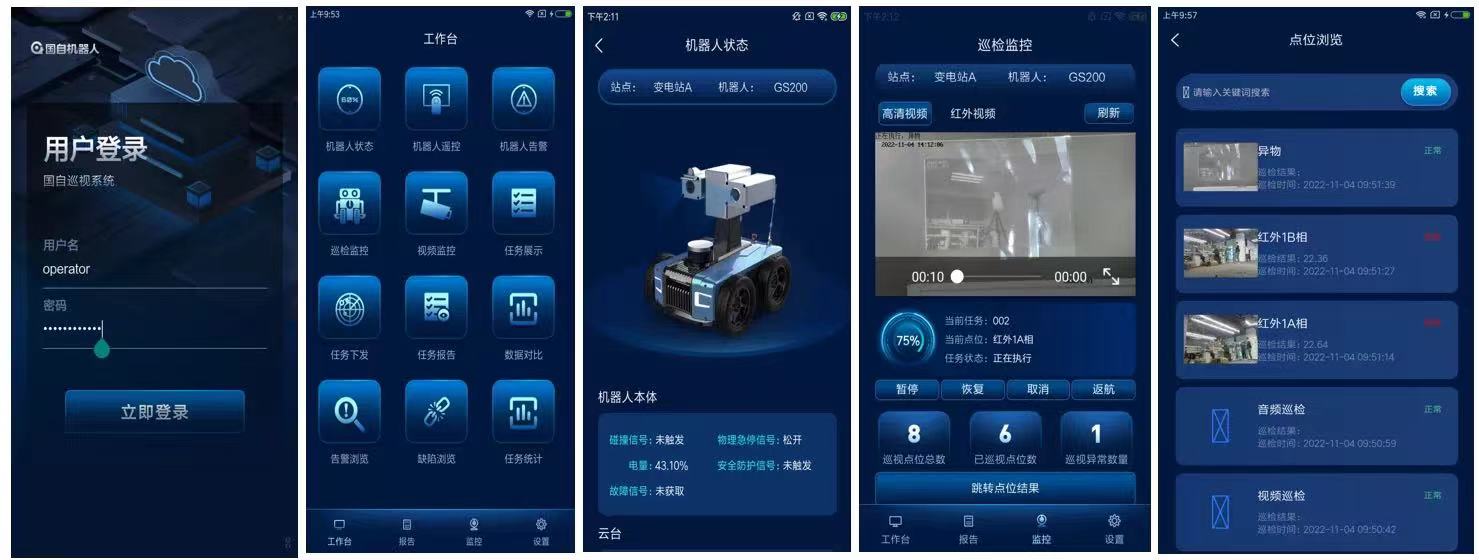 平台支持对多智能体设备的任务模式(自动与半自动)、紧急模式等智能切换,在巡视完可形成告警和巡检报告,并可结合部分典型设备的专家经验形成运维分析报告,帮助运维人员更高效的掌握设备运行情况,提升运维效率。同时,为提升不同场景的人机交互体验,以简化应用为设计理念,结合不同行业应用需求实现个性化APP定制,实现掌上管理。